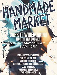 Market Sunday, May 11, 2025 - 10:00am to 1:00pm Held at Cork It Wine Making 1427 Crown Street, North Vancouver, BC 604-986-7475 |