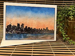 | Sunset View of Coal Harbour from Lonsdale Quay - Card |